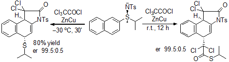 Recently, our group published1 the preparation ϒ-lactames obtained by reaction of chiral vinyl sulfilimines with dichloroketene in a process called ϒ-lactamization. This reaction produced up to two new stereocenters starting from a quiral sulfliminine. (Scheme 1)